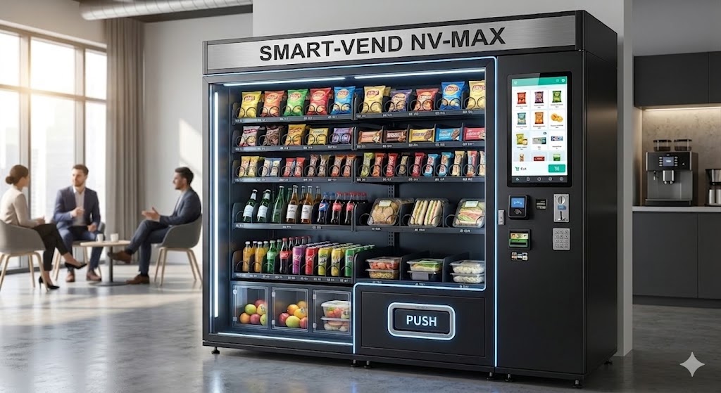 Versatile hybrid dispensing system engineered for snacks, beverages, and delicate goods.